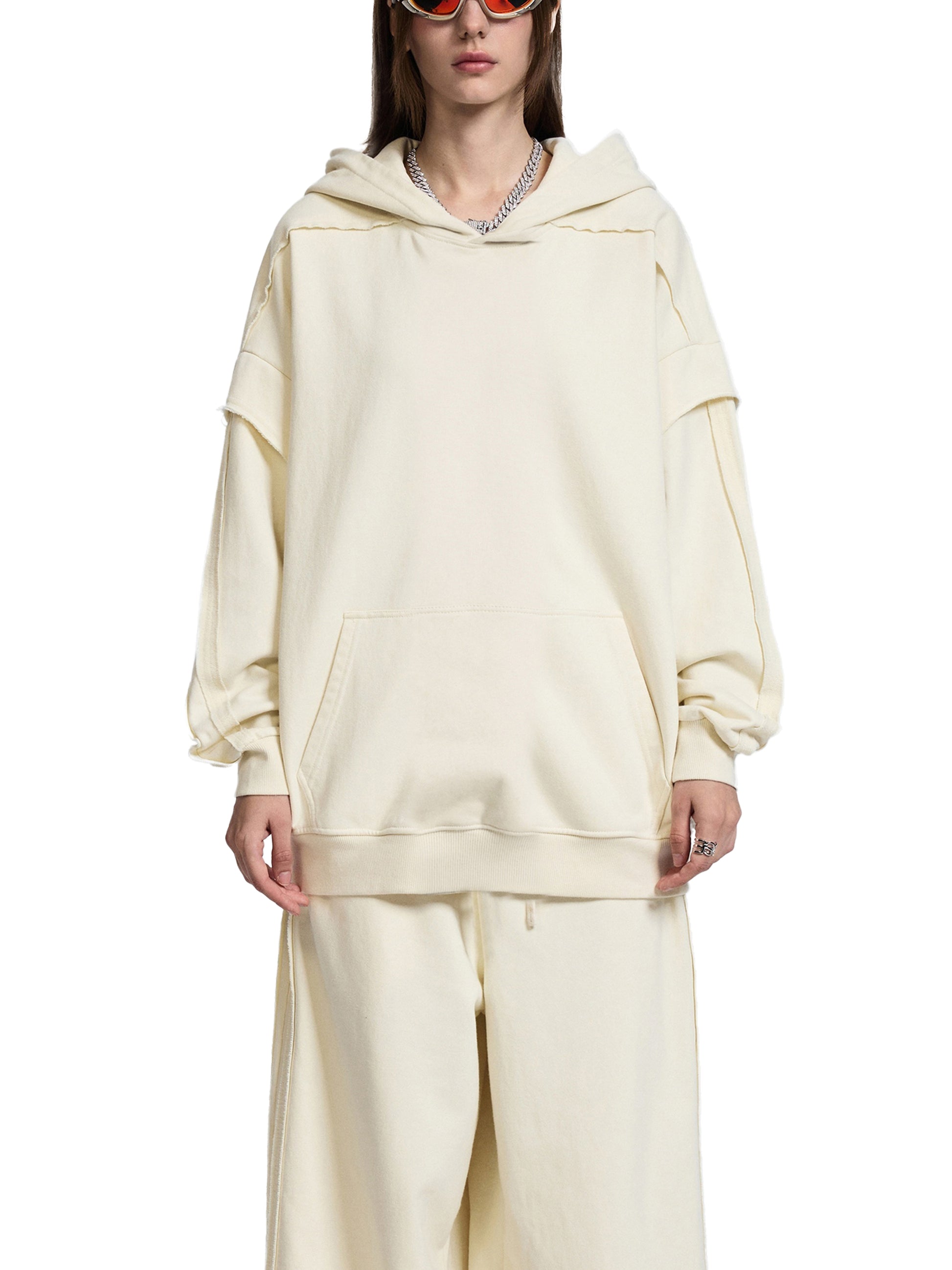Contrast Tape Raw Edge Double Layered Hoodie